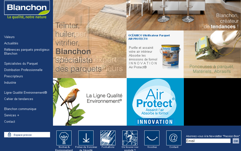 Le groupe Blanchon a été fondé en 1832. Référence dans le domaine du bois, et plus particulièrement dans celui du parquet, Blanchon évolue avec facilité entre les marchés de l’industrie, du bâtiment et les magasins de bricolage.